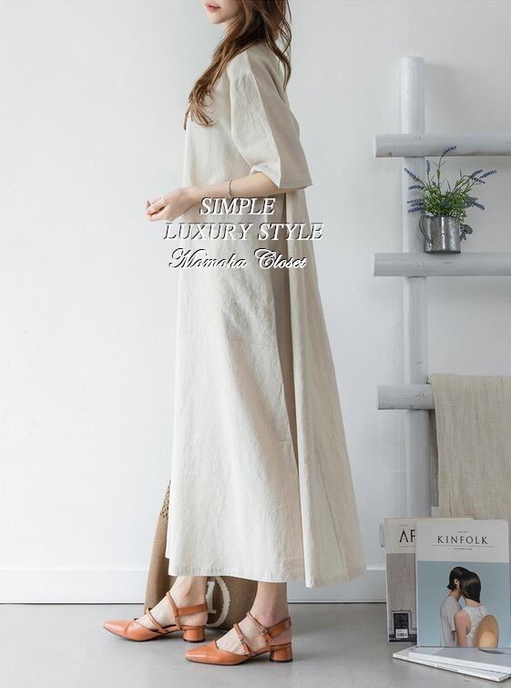 Vライン ポケット リネン マキシ ワンピース [gg-0002]
