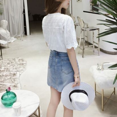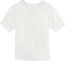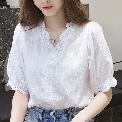 白 シフォンシャツ 半袖 Vネック レース シンプル [gg-0038]