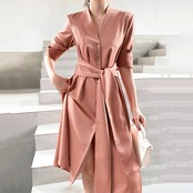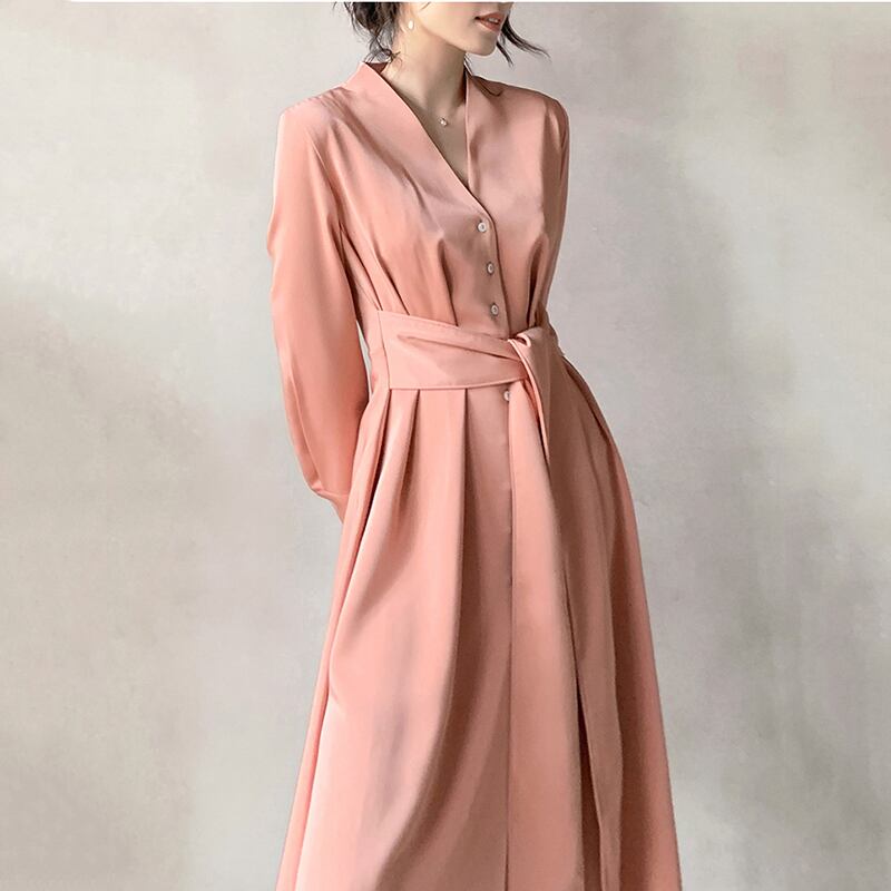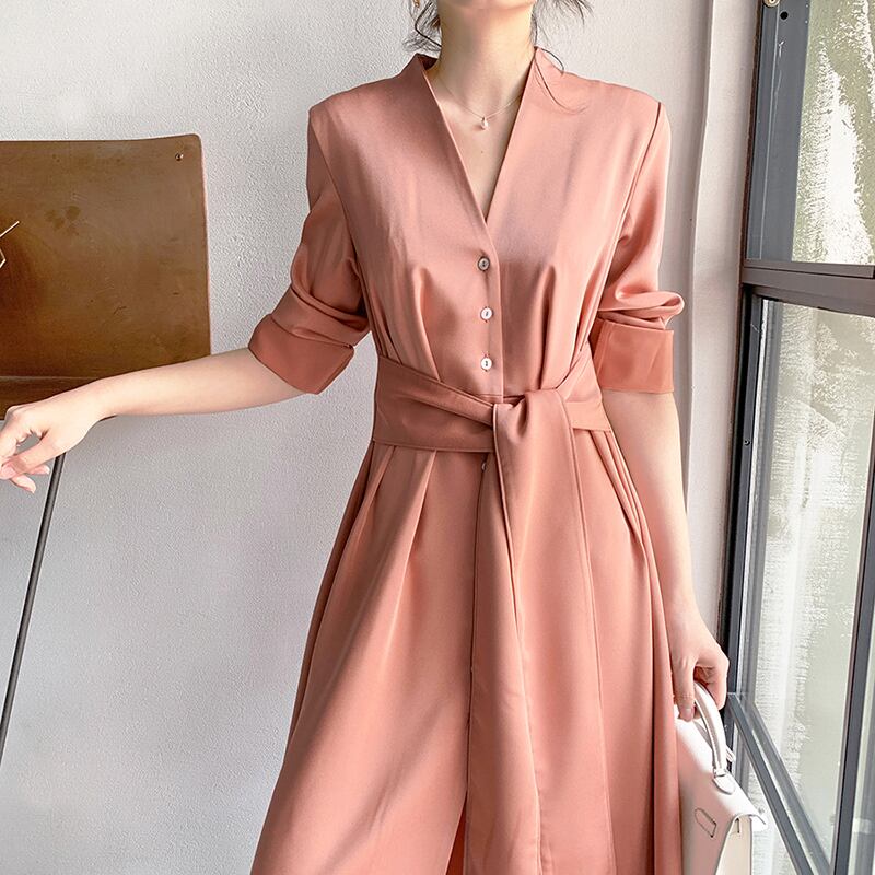 レディース シンプルウエストマーク ひざ下 ワンピース [gg-0062]