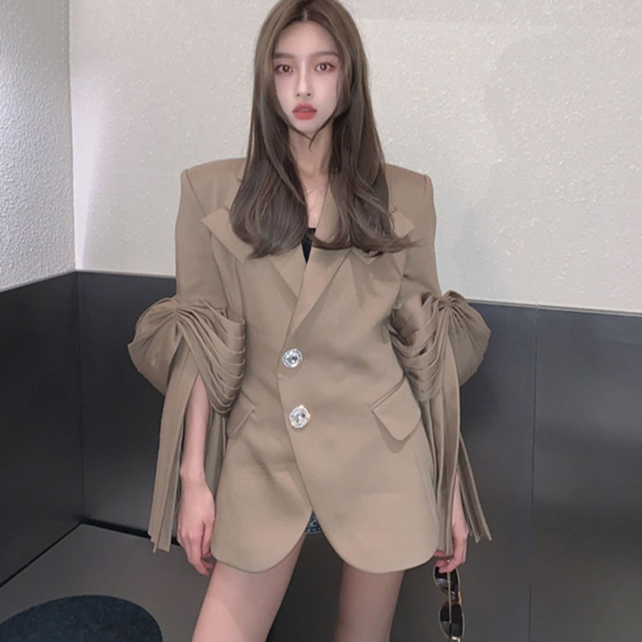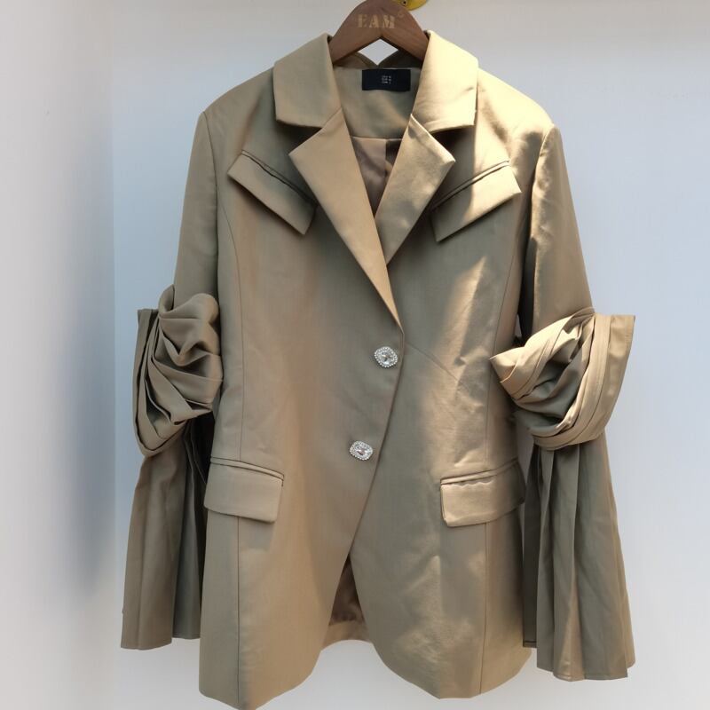 テーラード ジャケット プリーツ袖 シングル ベージュ [gg-0065]