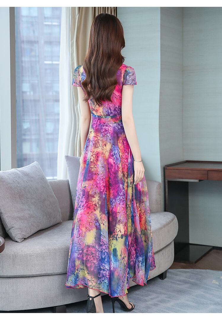 タイダイ 半袖 ワンピース スクエアネック フレア ドレス [gg-0138]
