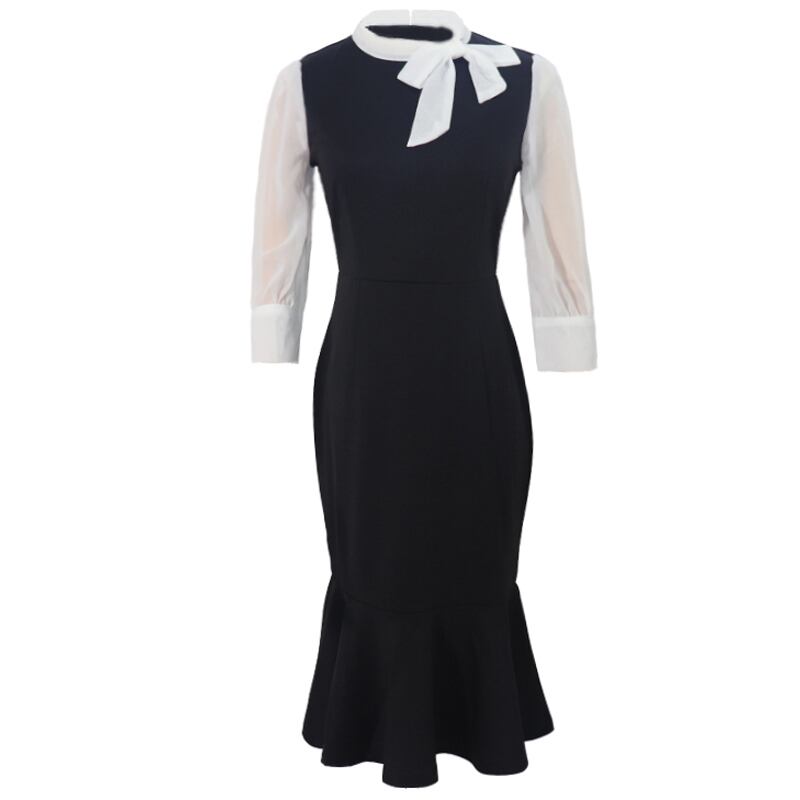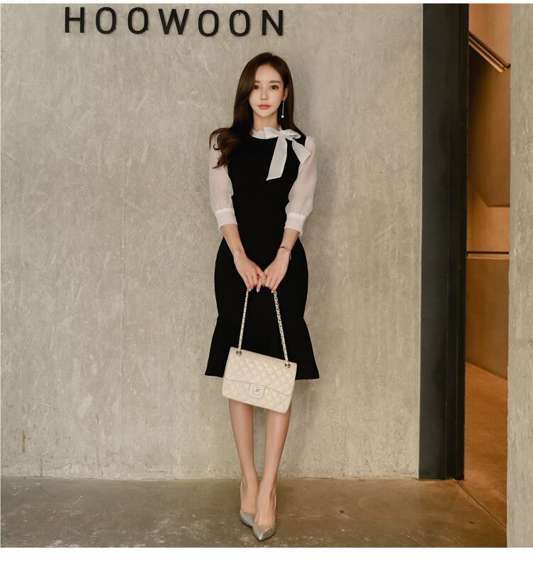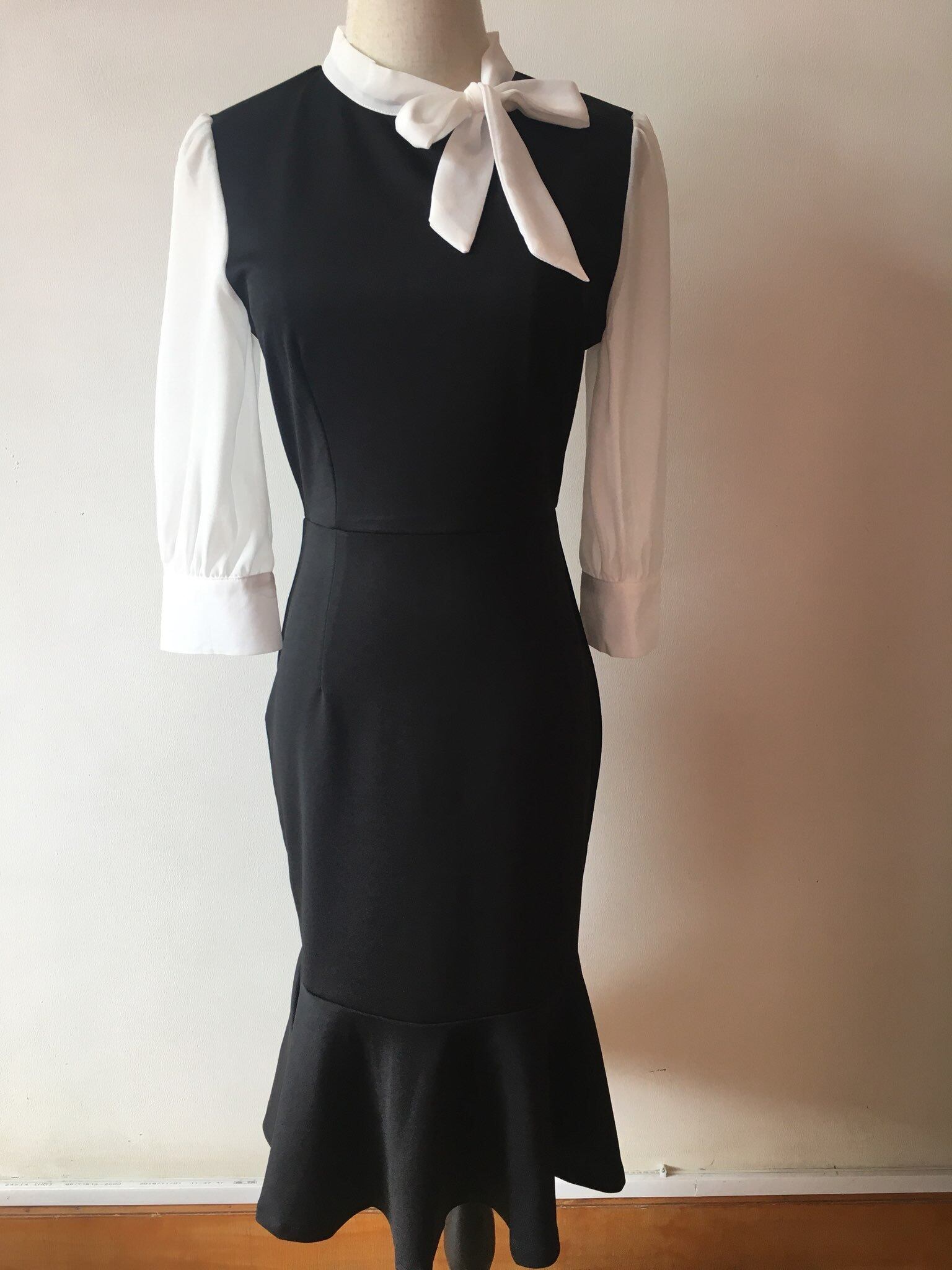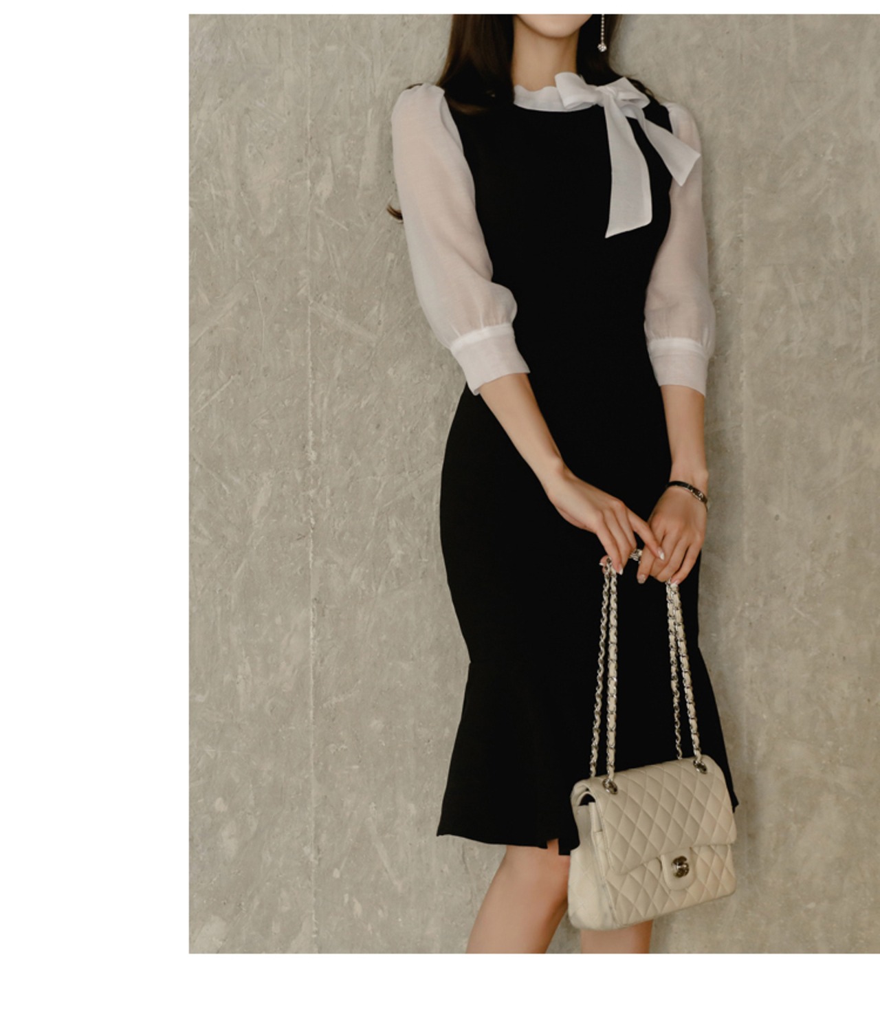 バイカラー オフィス ワンピース リボン マーメイド ドレス [gg-0142]