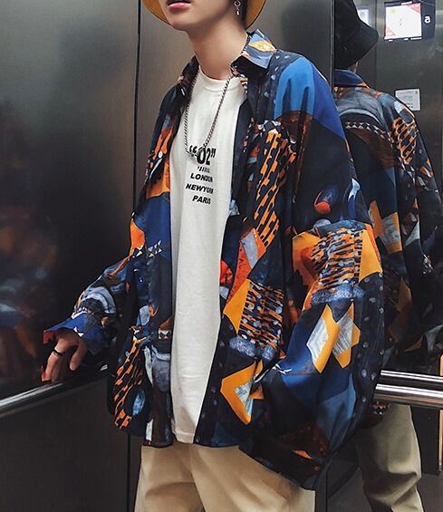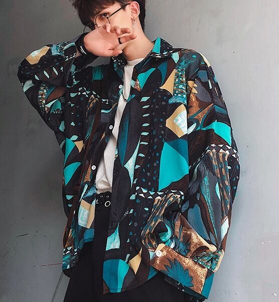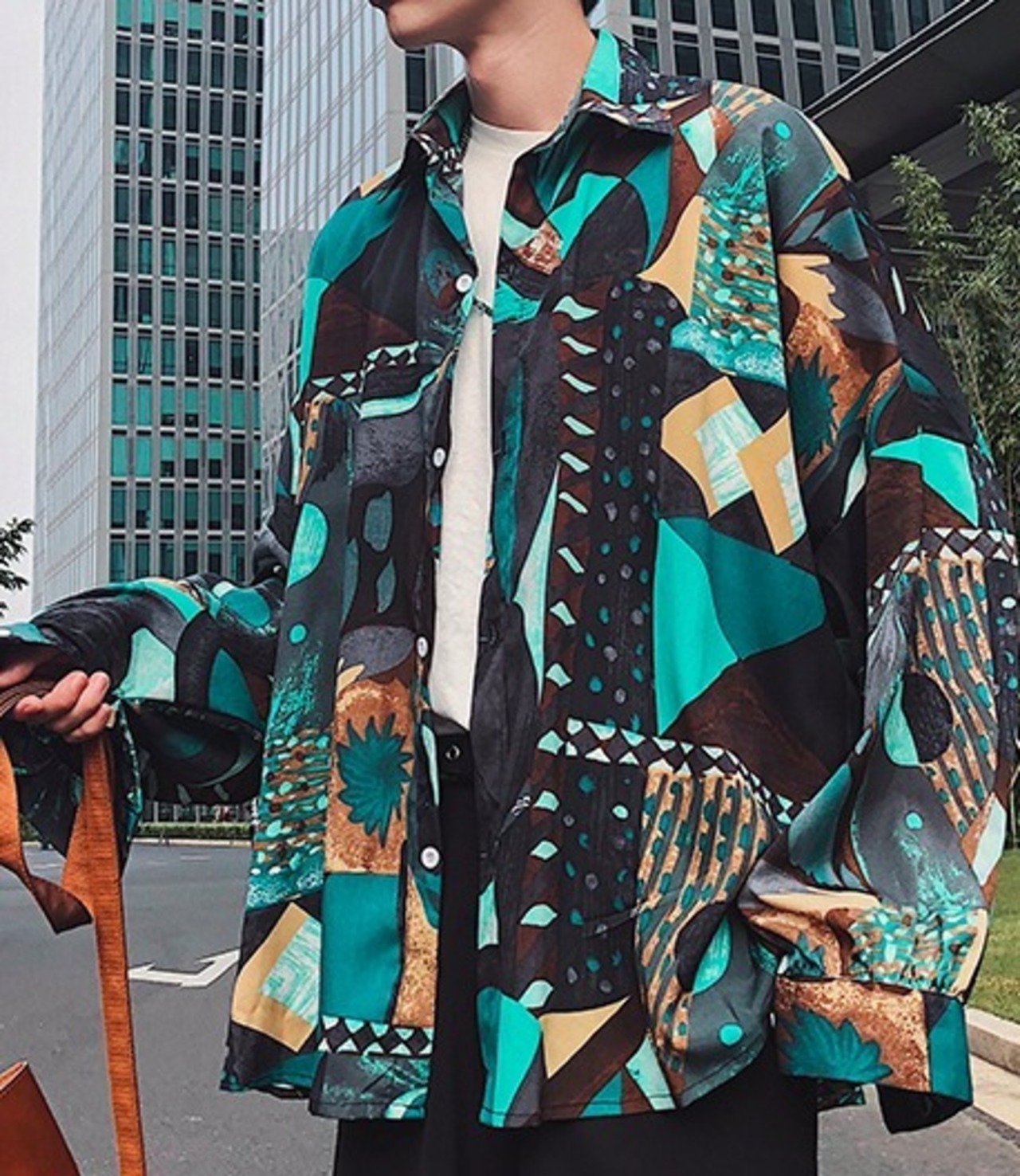 オーバーサイズシャツ メンズ 柄シャツ 長袖 [gg-0153]