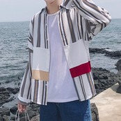 メンズ 長袖 ストライプ シャツ カジュアル オシャレ [gg-0165]