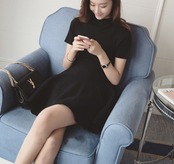 レディース ミニ ワンピース シンプル 無地 Aライン 赤 黒 半袖 [gg-0177]