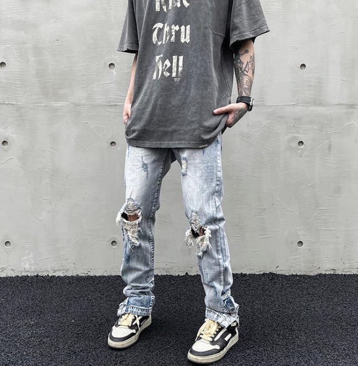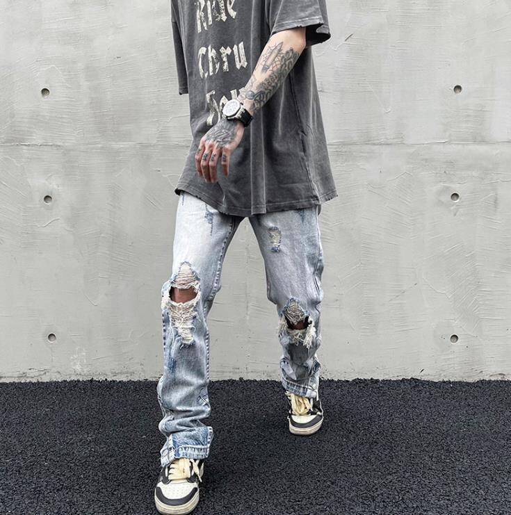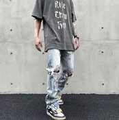 ストリートダメージ加工クラッシュパンツデニムGパン [gg-0198]