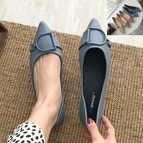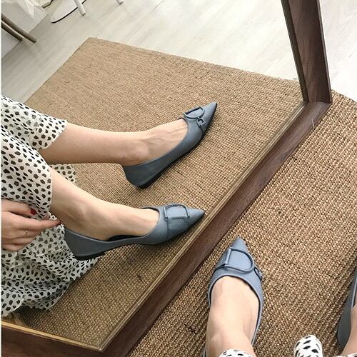 シンプル つま先とんがり 柔らか素材 フラットシューズ [gg-0225]