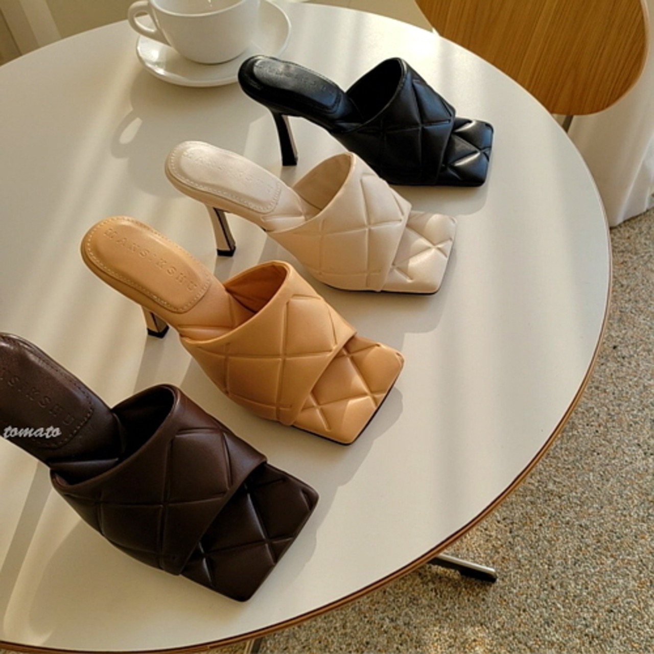 つま先四角 エンボス 8.5㎝ピンヒール ミュール [gg-0230]