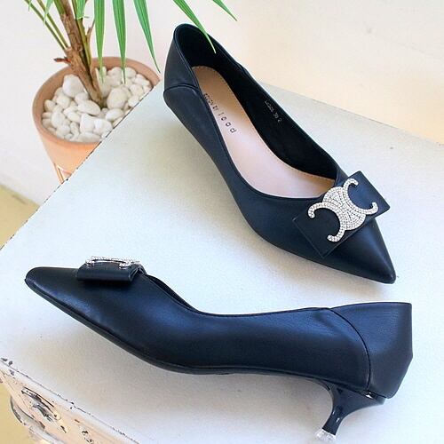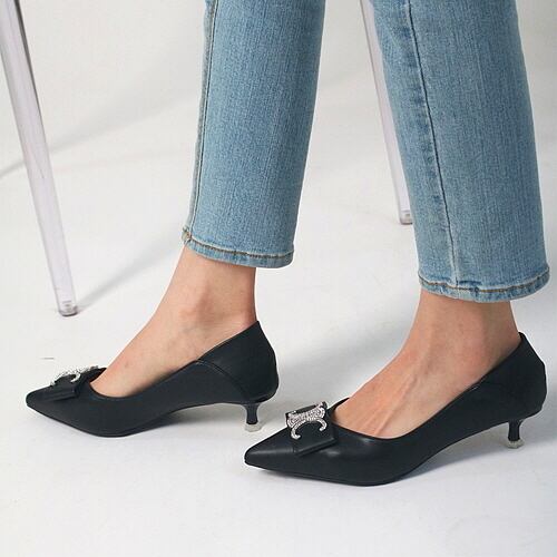 4cmヒール リボン装飾 とんがりつま先 パンプス [gg-0232]