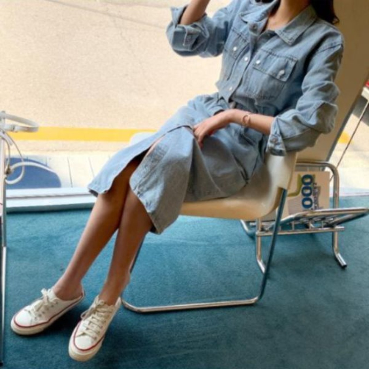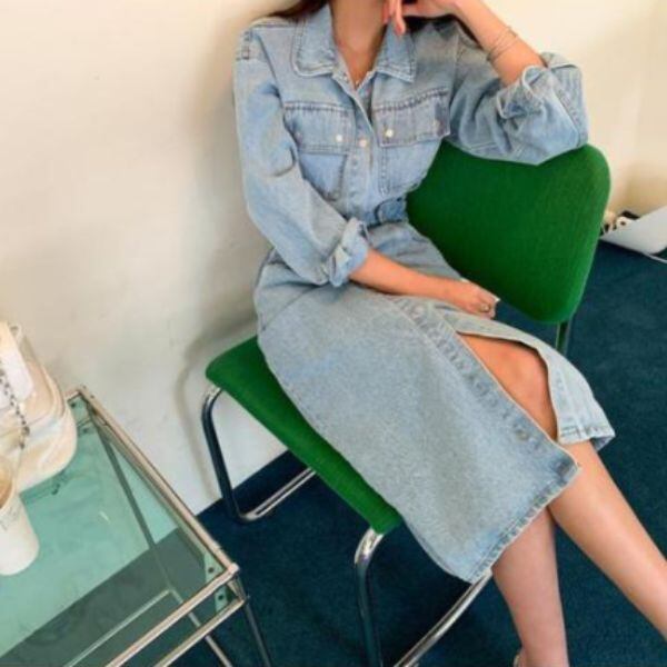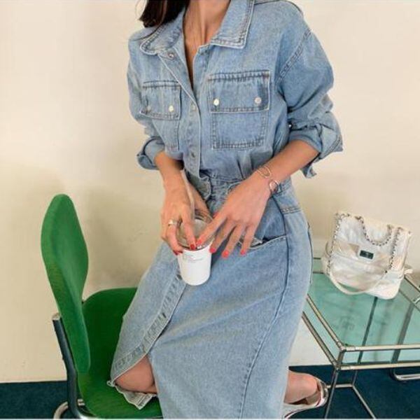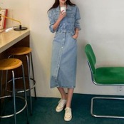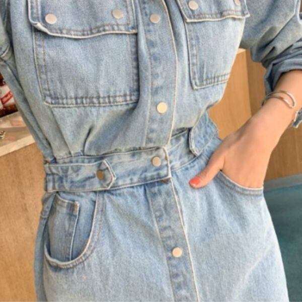 デニムワンピース サイドベルト ポケット [gg-0237]