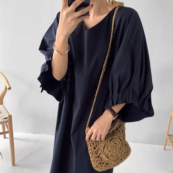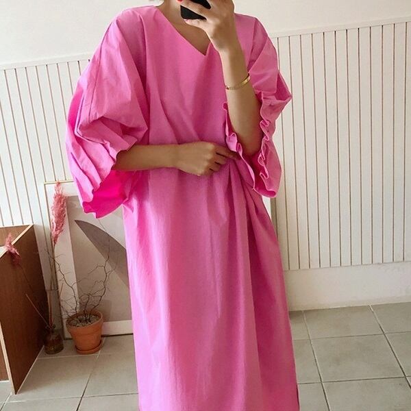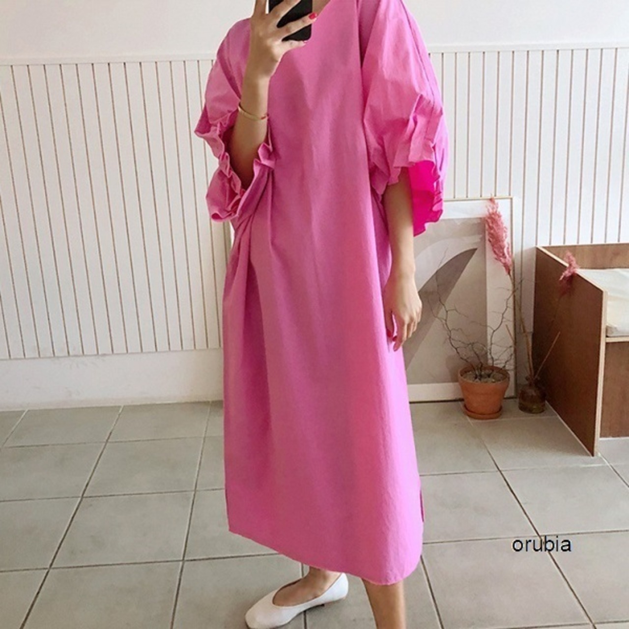 ドルマン フリル ワンピース ボリュームスリーブ [gg-0238]
