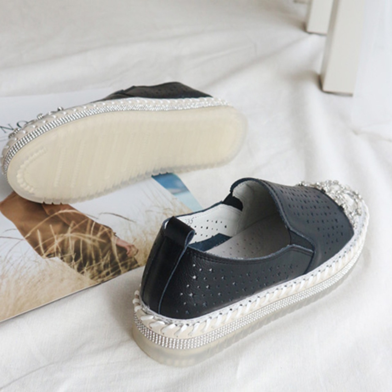 ラインストーン つま先 キラキラ 厚底スリッポン [gg-0255]