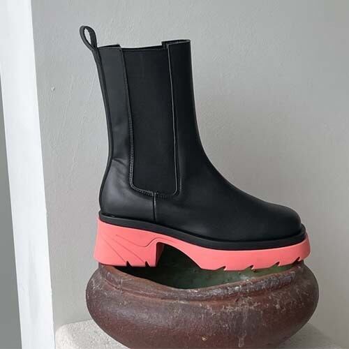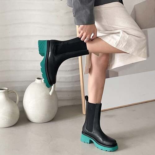 靴底カラー サイドゴア 5cmヒール ショートブーツ[gg-0268]