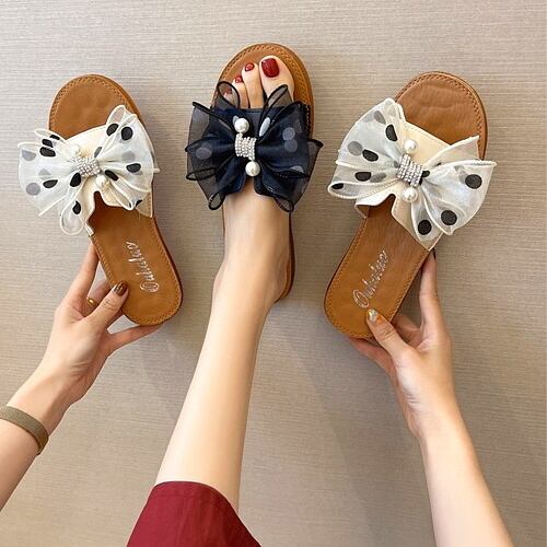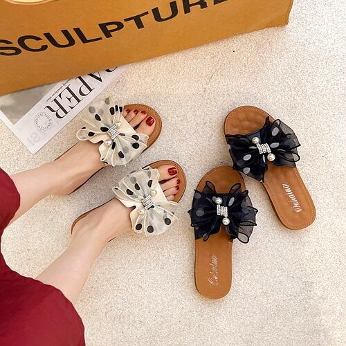 水玉 シフォンリボン ぺたんこ サンダル スリッパ [gg-0273]