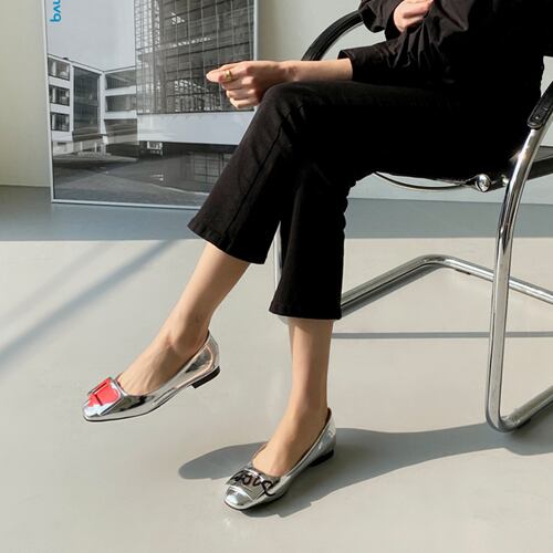 エナメル バックル つま先四角 フラットシューズ [gg-0274]