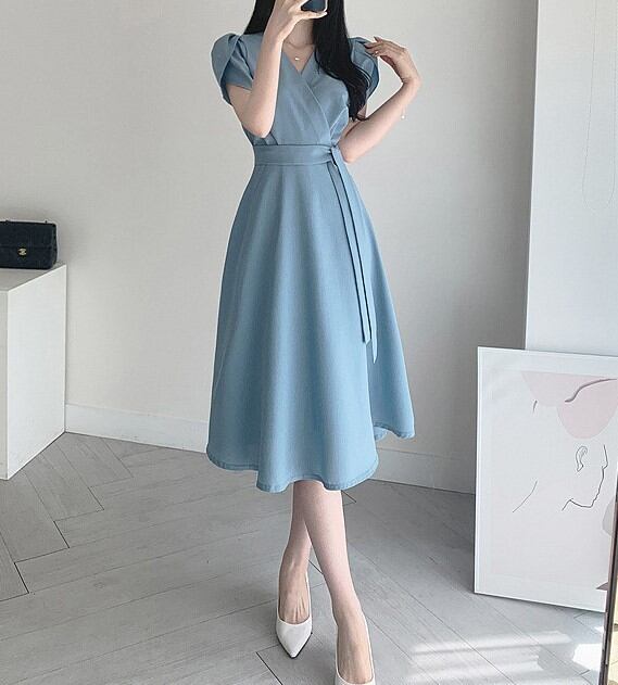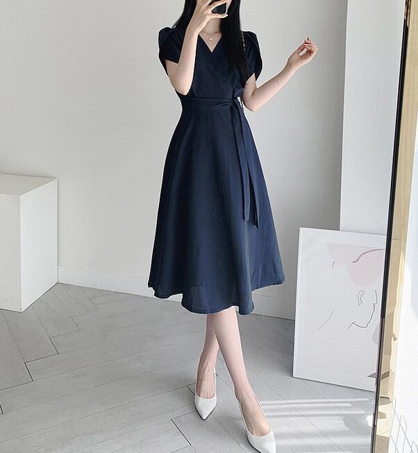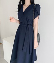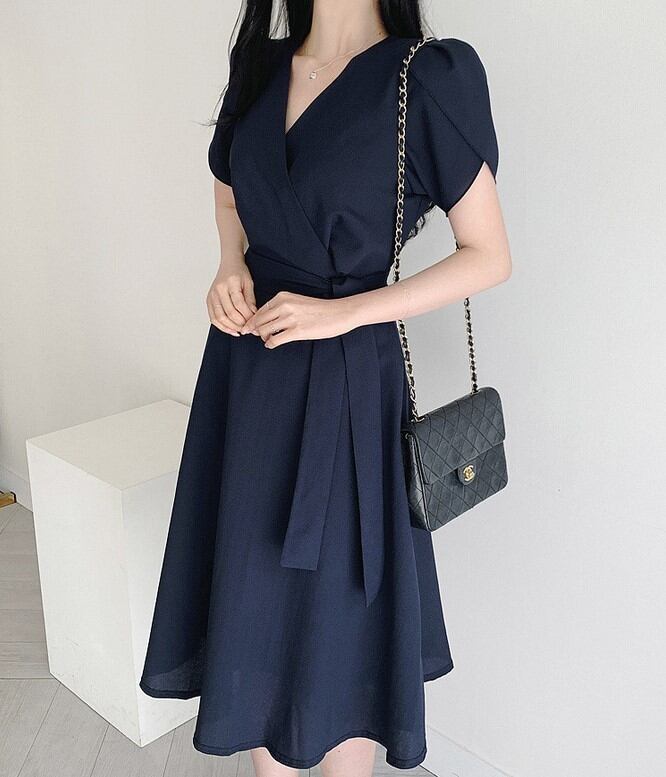 チューリップ スリーブ カシュクール リボン ワンピース [gg-0289]