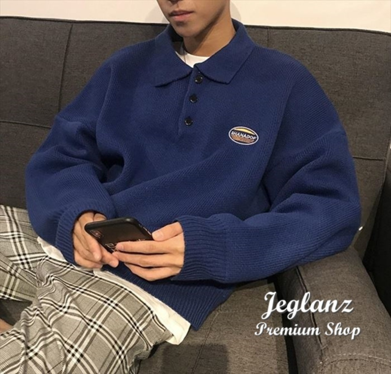 メンズ カジュアル ニット ポロ シンプル ロゴ トレンド [gg-0320]