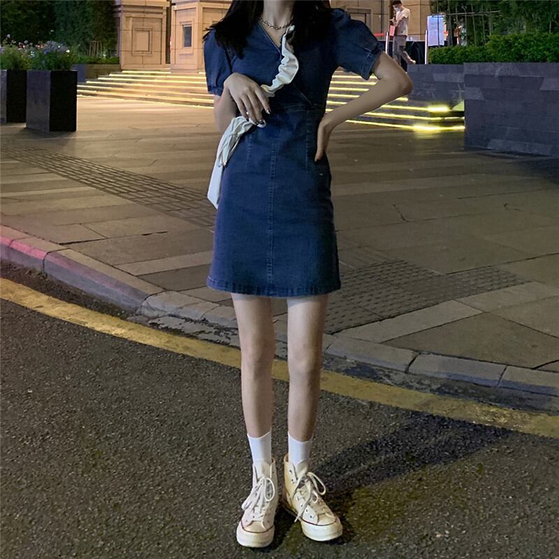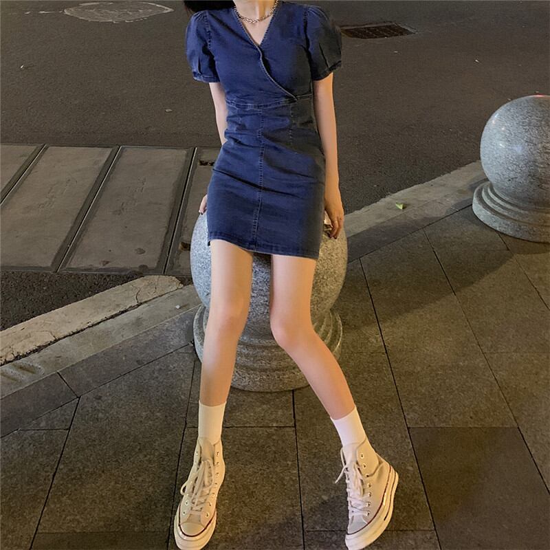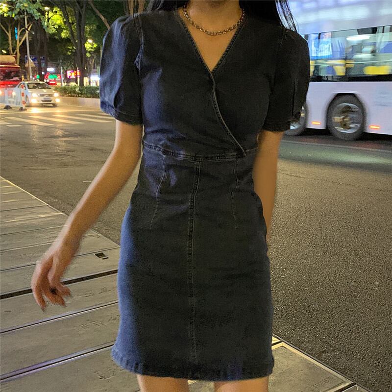 カシュクール デニム ミニワンピース パフスリーブ [gg-0323]