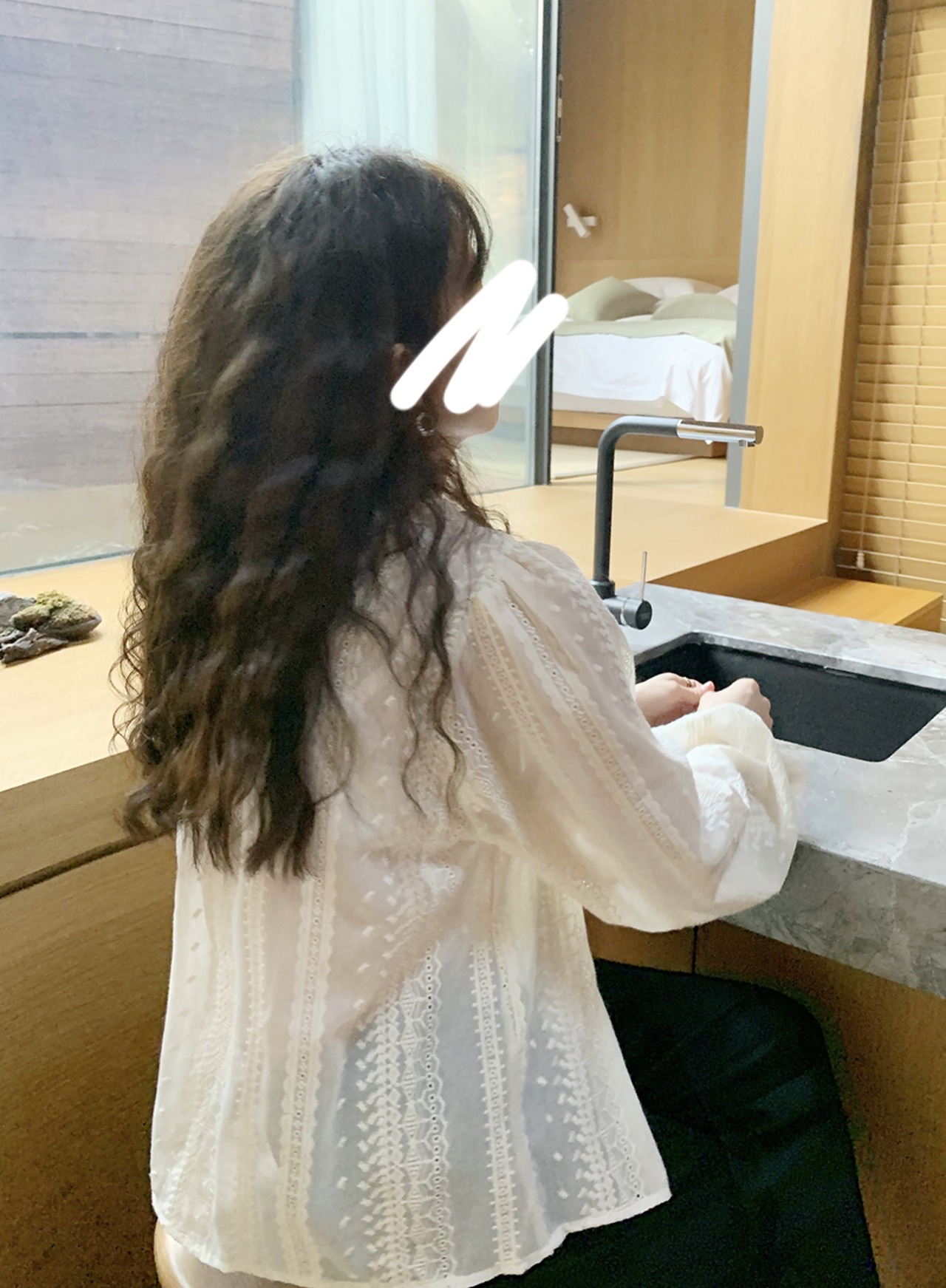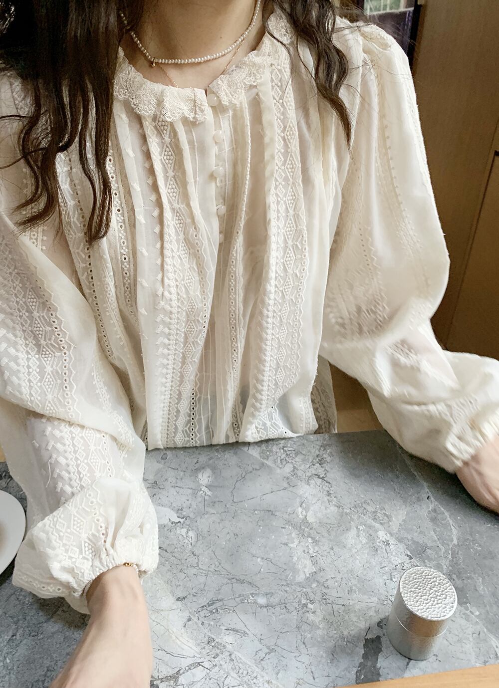 シアー レース ブラウス ボリューム袖 フェミニン [gg-0330]