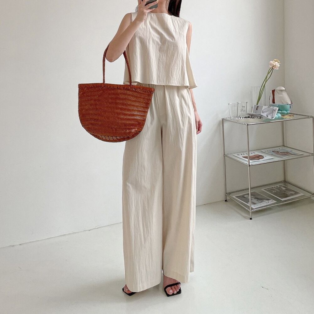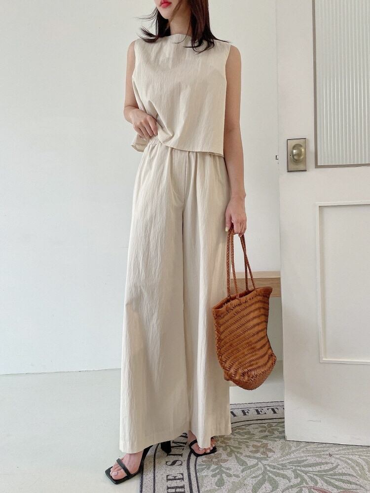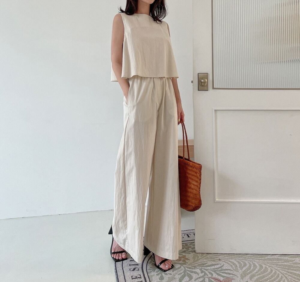 フレア ノースリーブ& ハイウエスト ワイドパンツ [gg-0351]