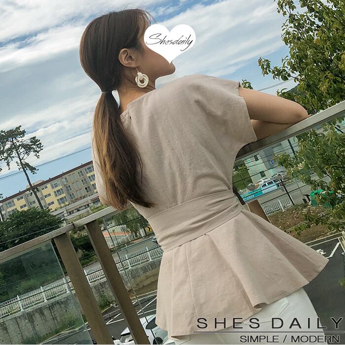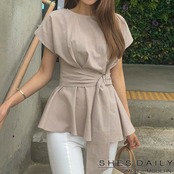 フェミニンなペプラムベルト付きブラウス [gg-0352]