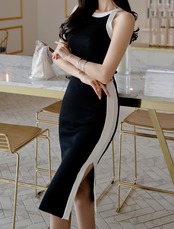 サイドライン スリット めりはり サマーニットワンピース [gg-0372]