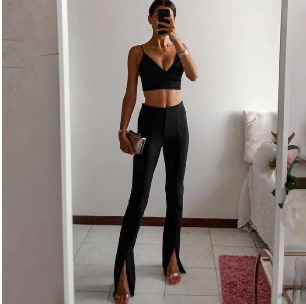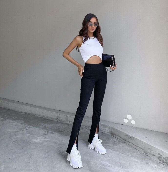 ハイウエストスリムジッパースリットパンツ [gg-0380]