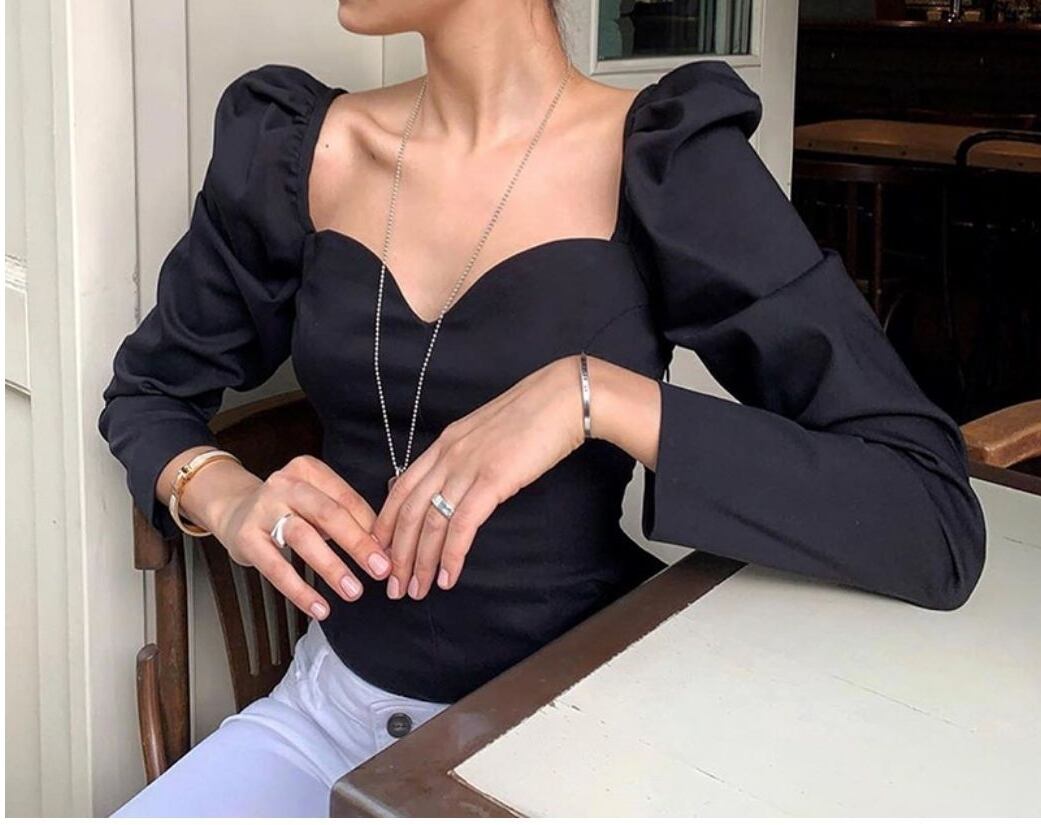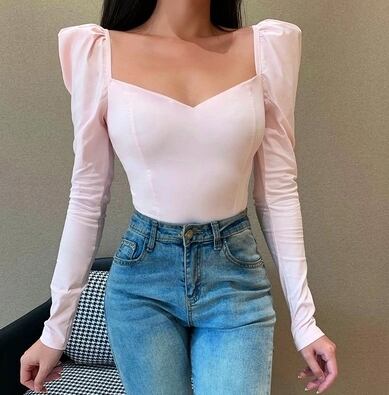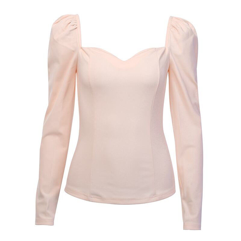 スクエアネック ブラウス スリム 長袖 Tシャツ [gg-0383]