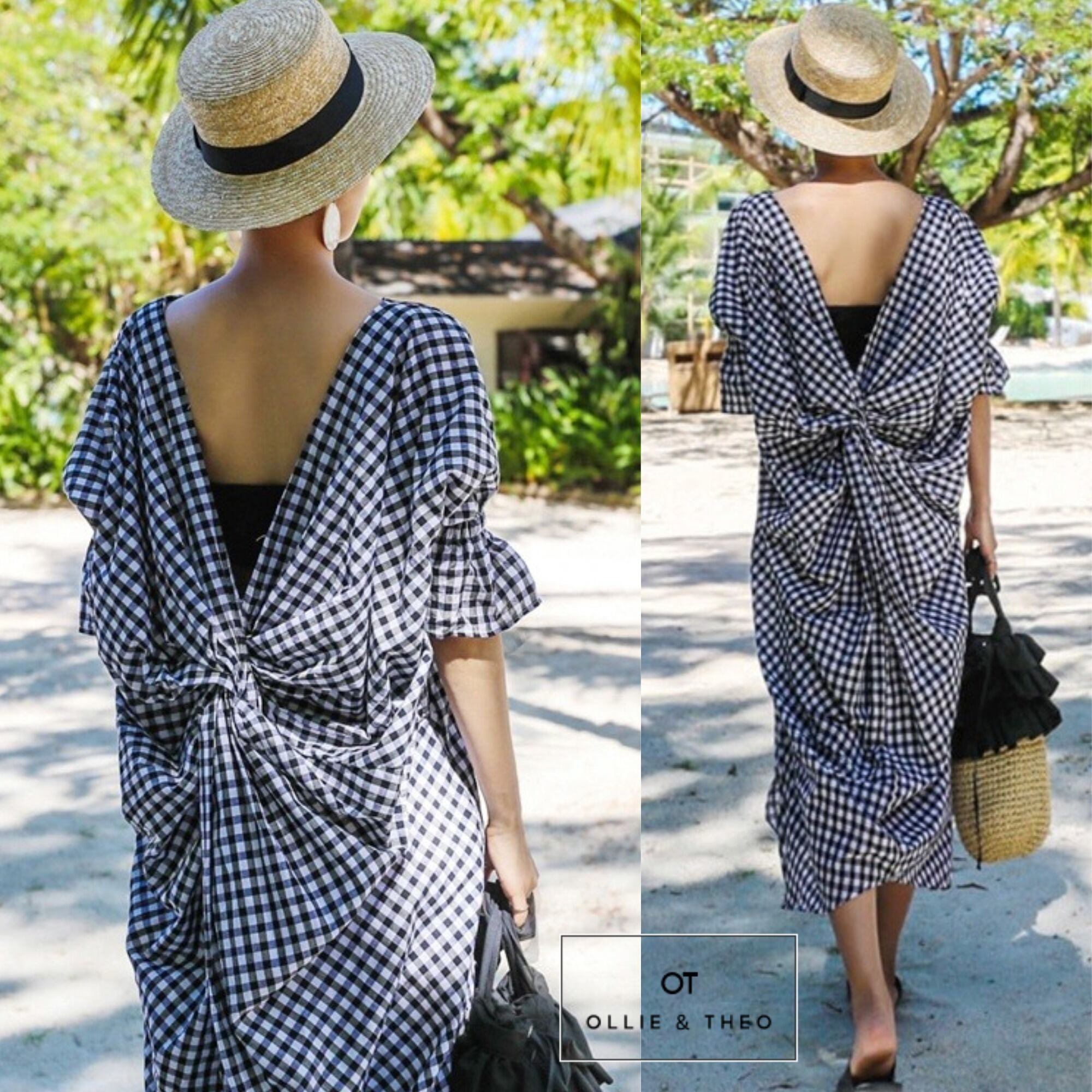 ギンガムチェック ゆったり 体型カバー 綿 ワンピース [gg-0388]