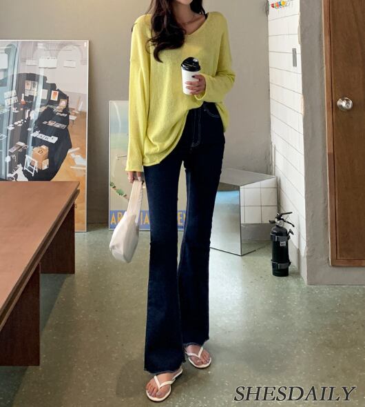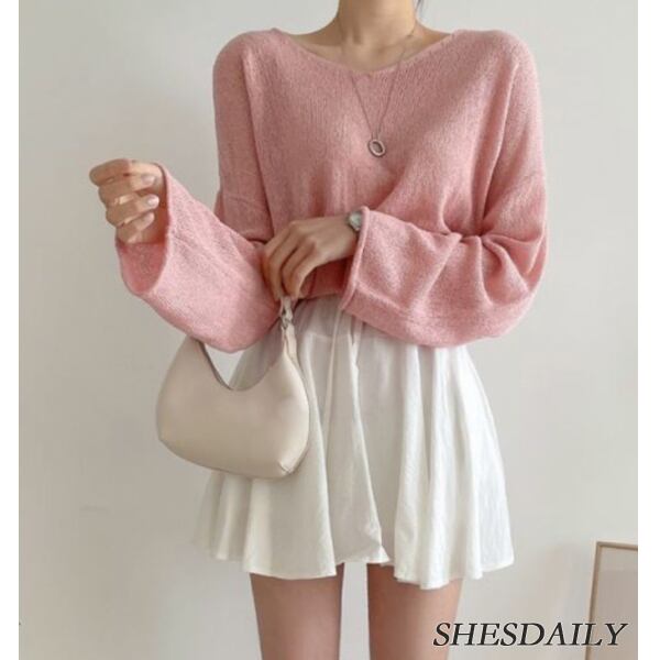Vネック ルーズ プクル サマー ニット [gg-0406]