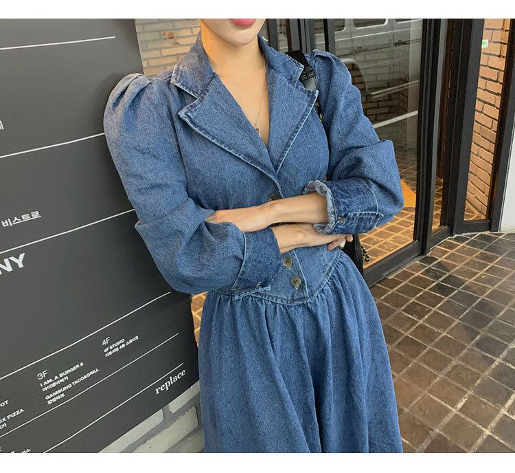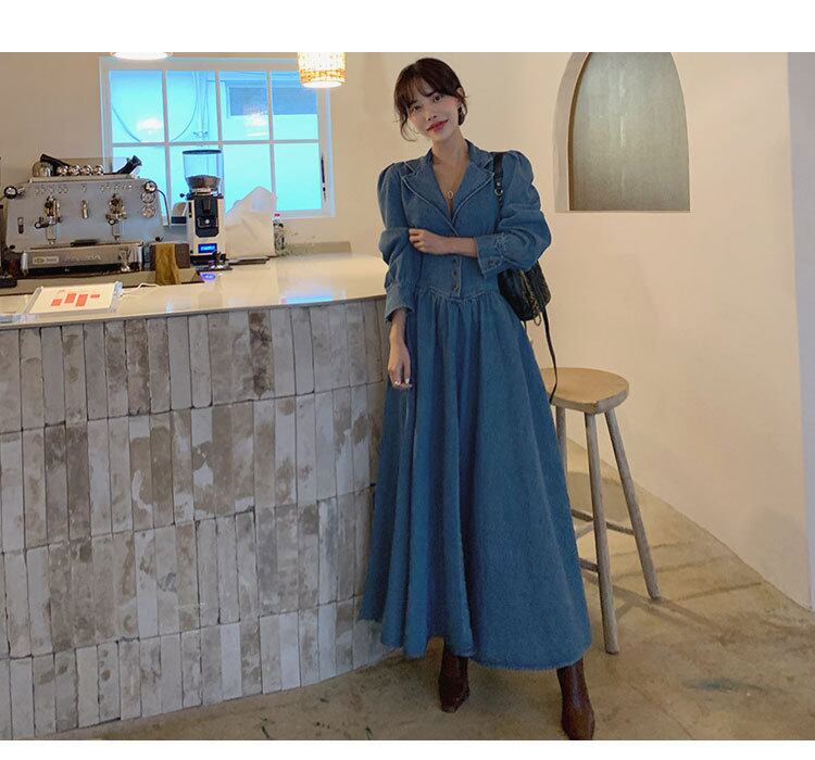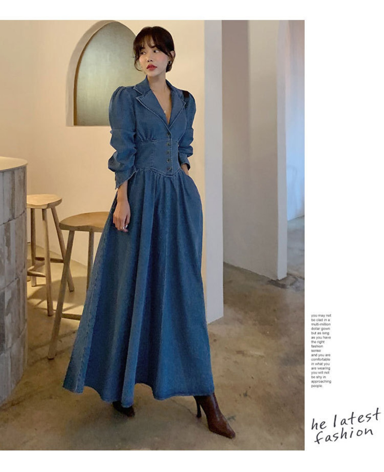 パフスリーブロングデニムドレスワンピース [gg-0410]