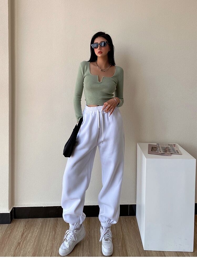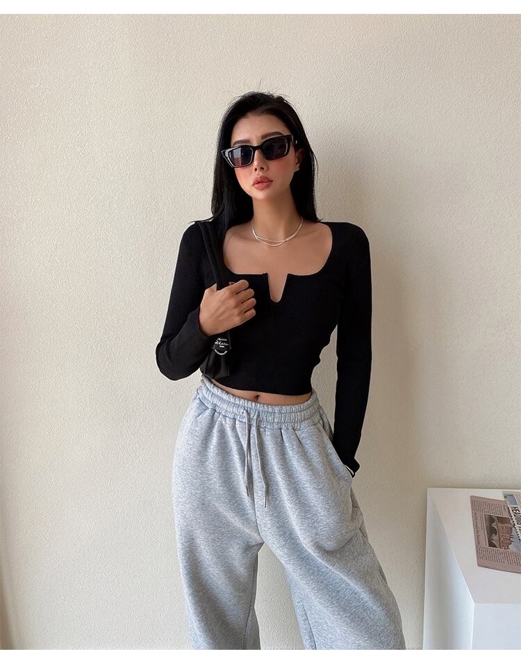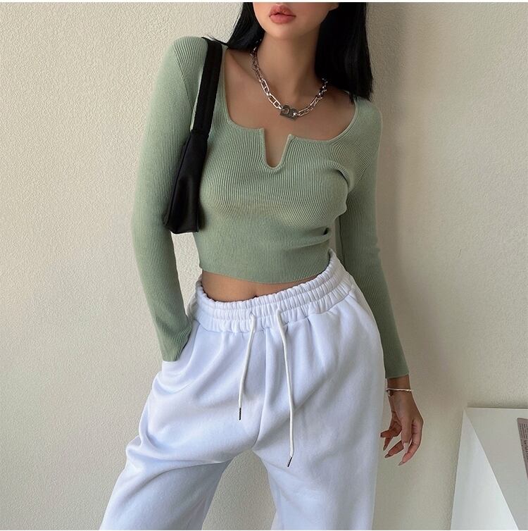 3色展開クロップドスクエアネックリブロンTトップス [gg-0423]