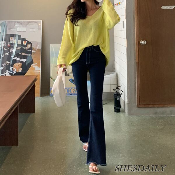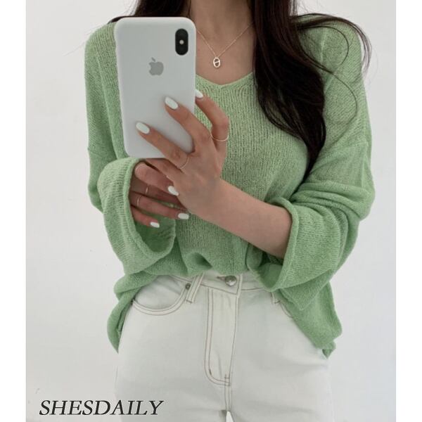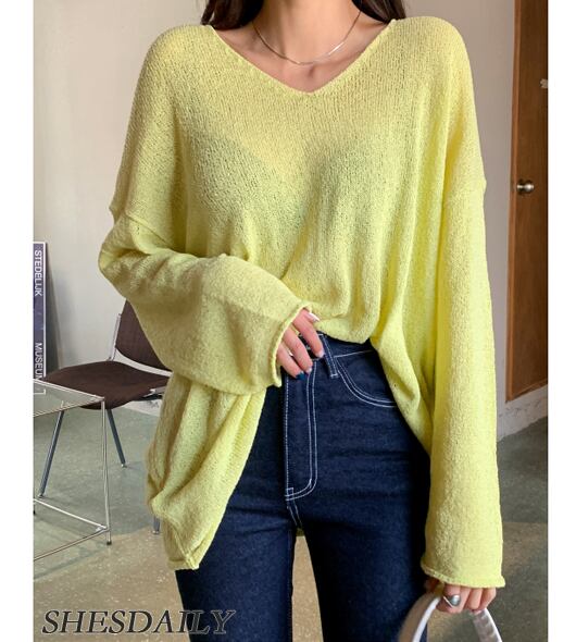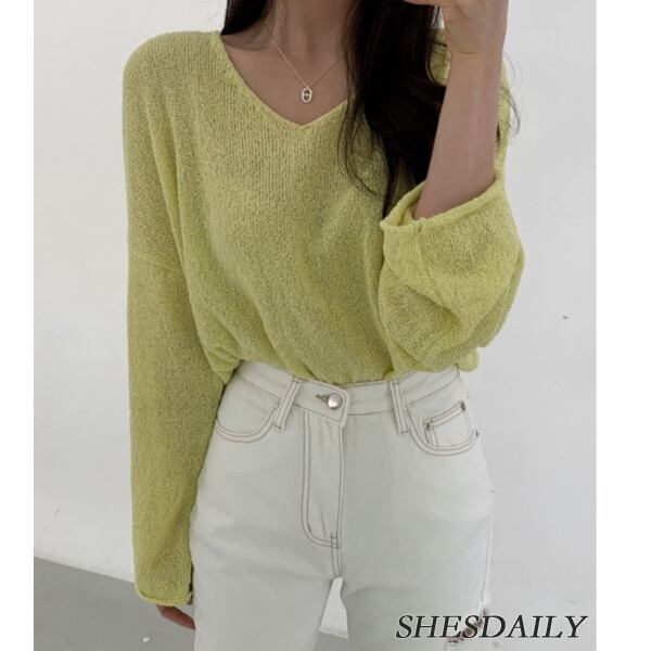 Vネック ルーズ プクル サマー ニット [gg-0426]