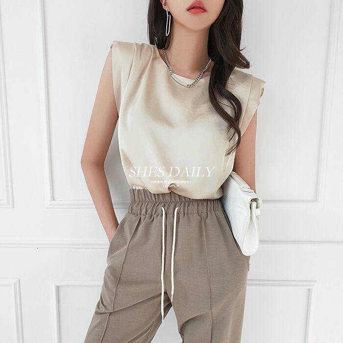 シルキー サテン スリーブレス ブラウス [gg-0427]