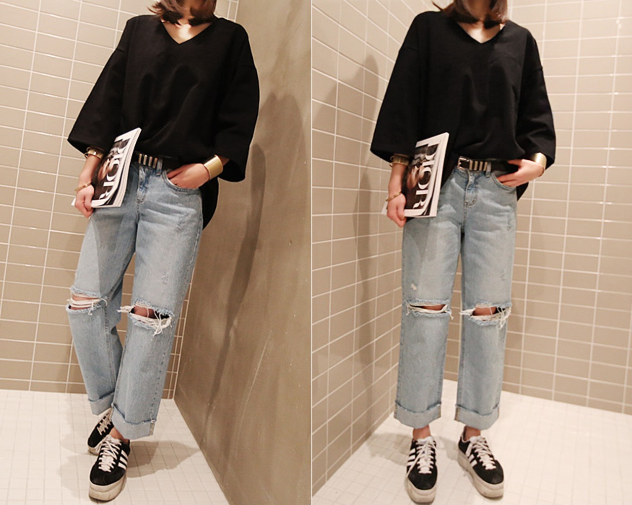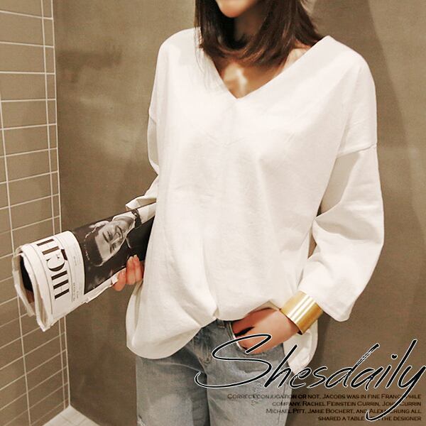 Vネック 8分袖 デイリー Tシャツ 2色 [gg-0458]