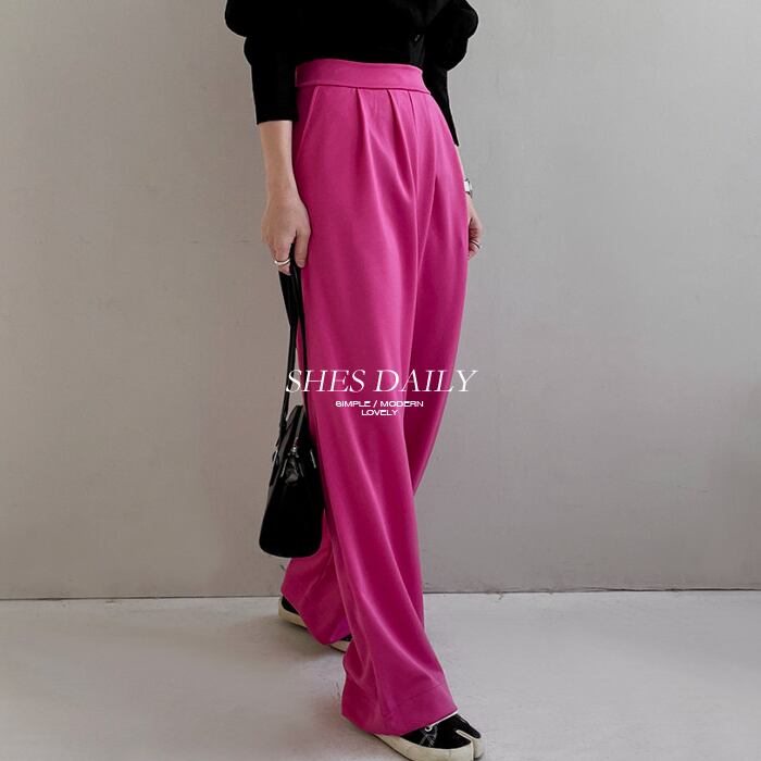 ハイウエスト ピンタック スパン ワイドスラックス [gg-0472]