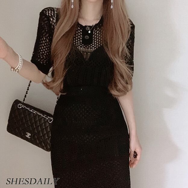 パンチング レース 半袖ニット スカート SET [gg-0480]