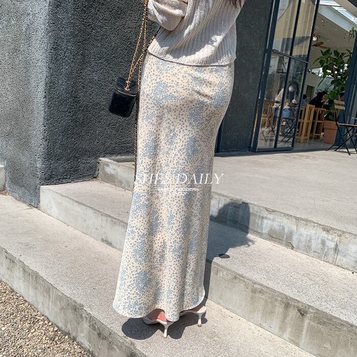 ミニフラワー 捺染 ロング ワンピース 3色 [gg-0481]