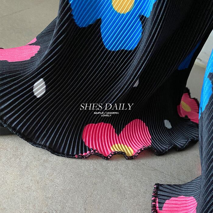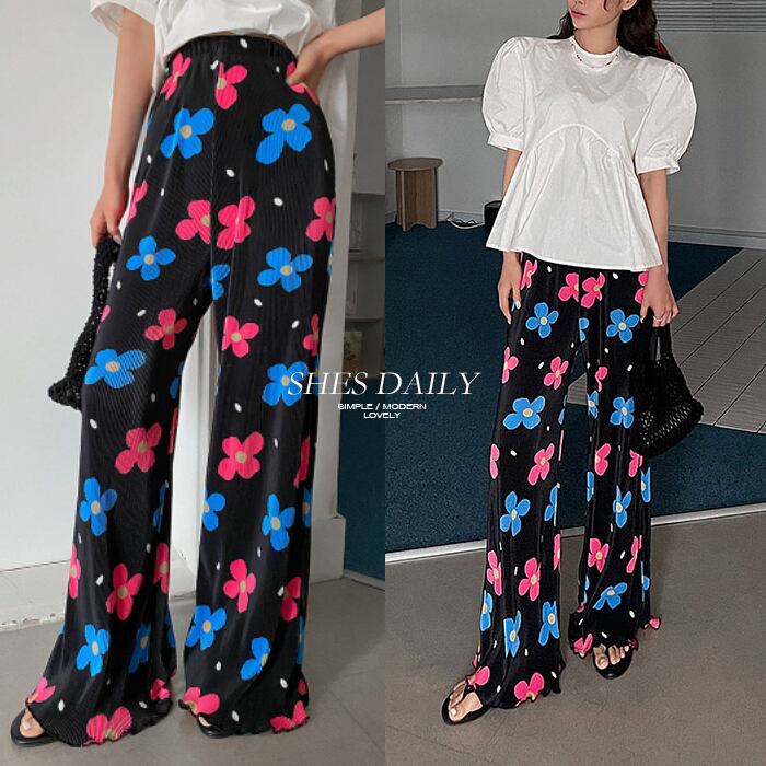 プリーツ フラワー バンディング ワイドパンツ [gg-0482]