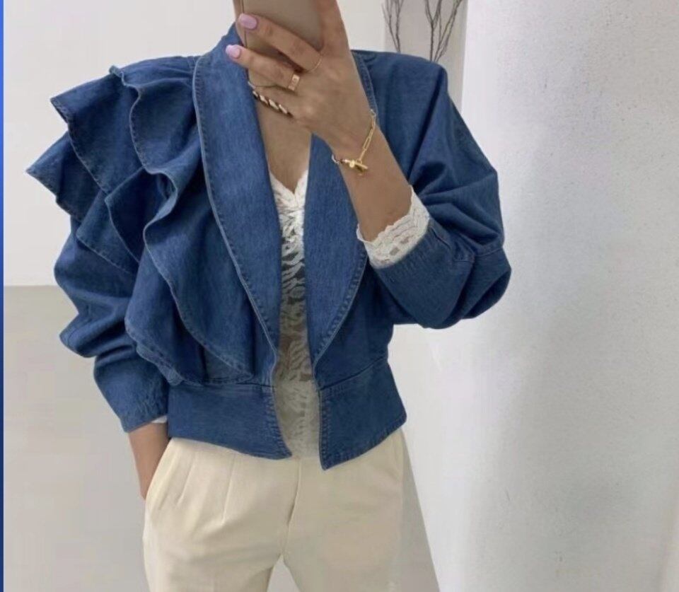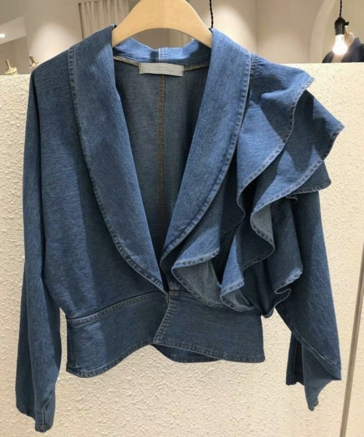アシメ フリル デニム クロップドジャケット [gg-0492]