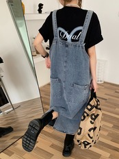 ルーズ ビッグポケット デニム サロペット スカート [gg-0497]