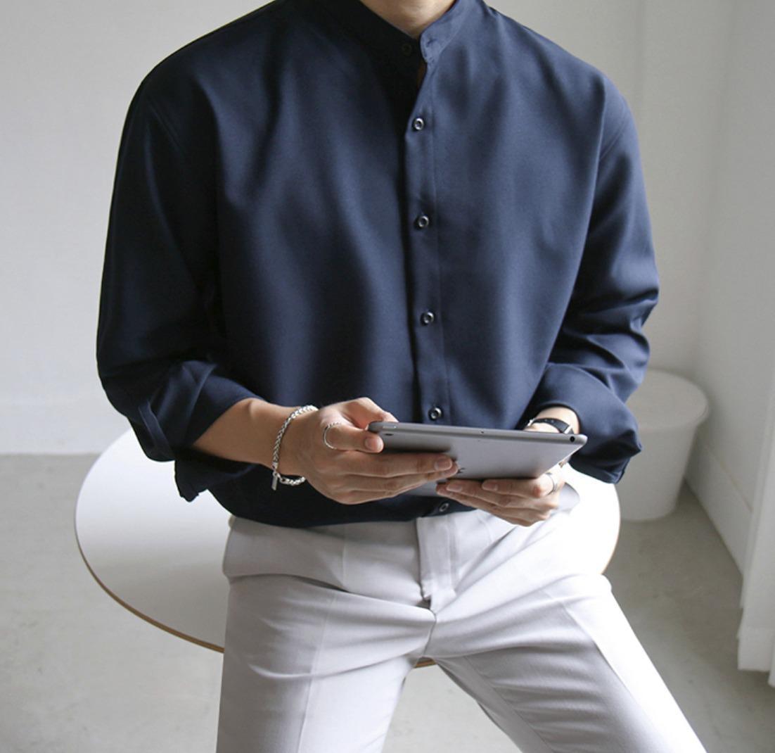 メンズ シンプル ノーカラー シャツ カジュアル 韓国 [gg-0506]
