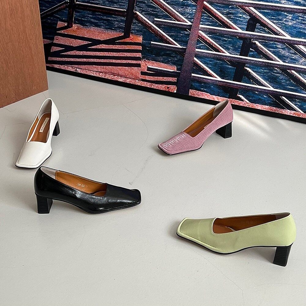 スクエア チャンキーヒール パンプス 5cm [gg-0510]
