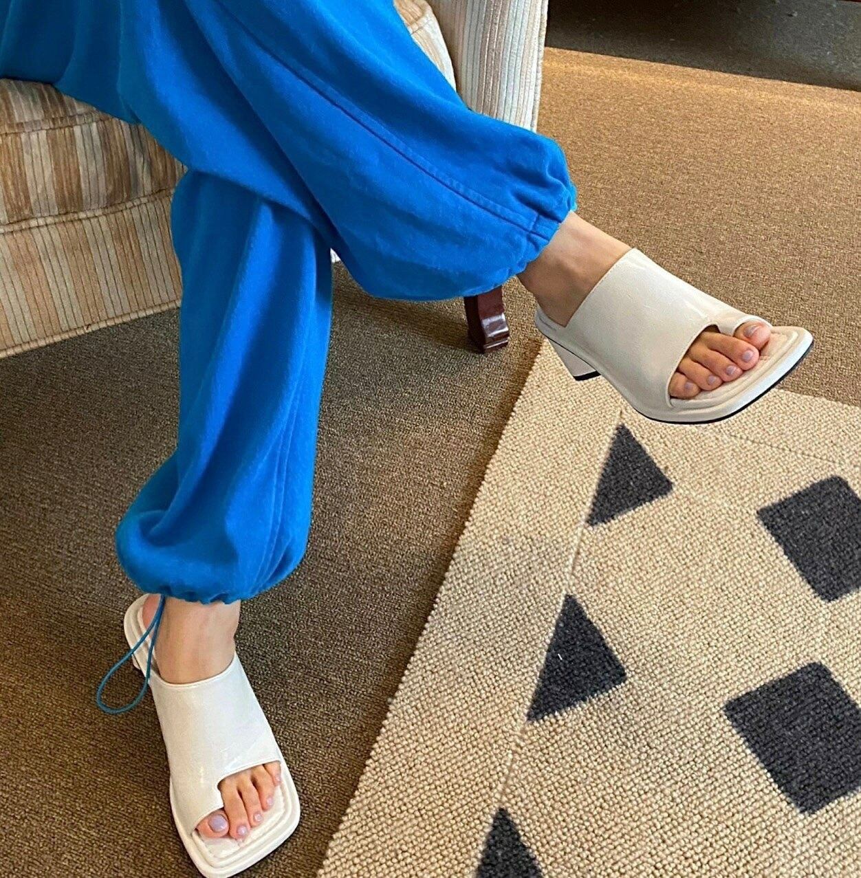 ラウンドヒール スクエア アシメ トングサンダル 韓国 [gg-0514]