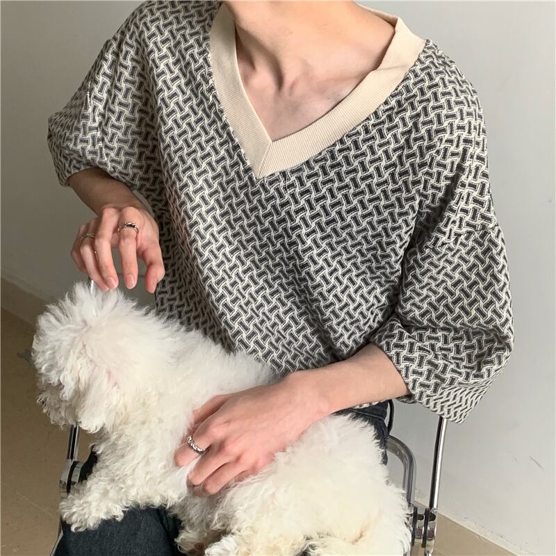 メンズ Vネック オーバーサイズ Tシャツ 韓国 [gg-0518]