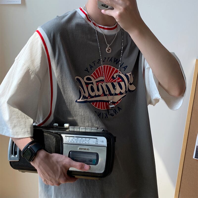 フェイクレイヤード Tシャツ ストリート スポーツ [gg-0519]