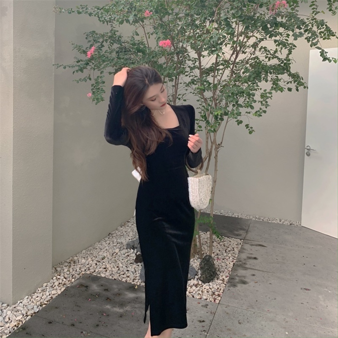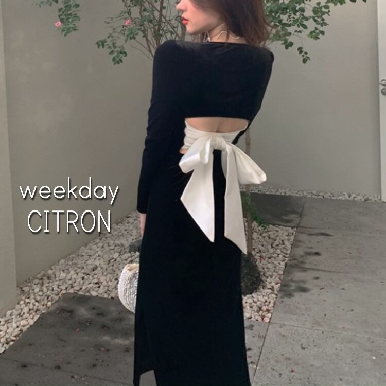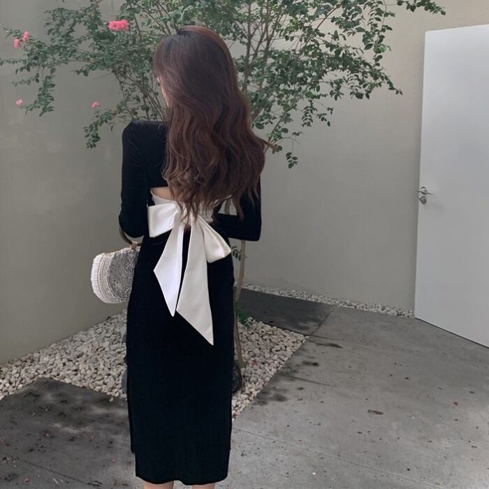 バックリボン パーティードレス ワンピース スリット [gg-0521]