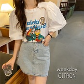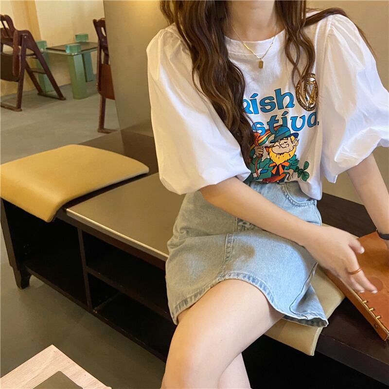 パフスリーブ プリント Tシャツ 韓国 カジュアル [gg-0525]