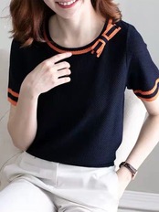 サマーニット トップス 半袖 リボン韓国[gg-0527]