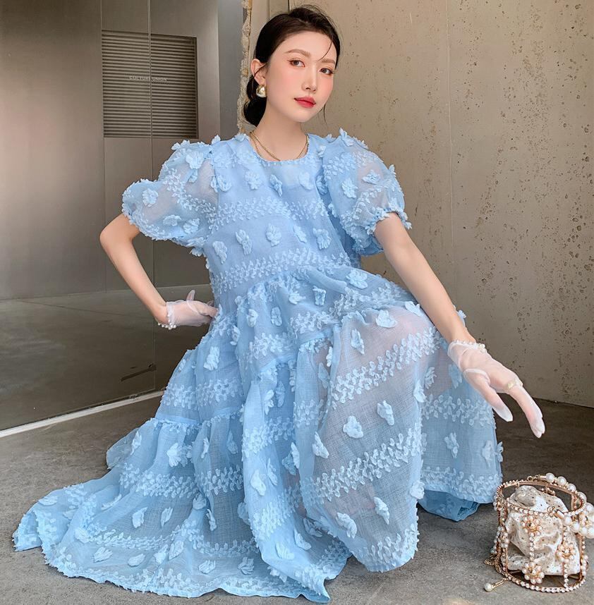 ペールブルー ワンピース ドレス フェミニン Aライン [gg-0529]